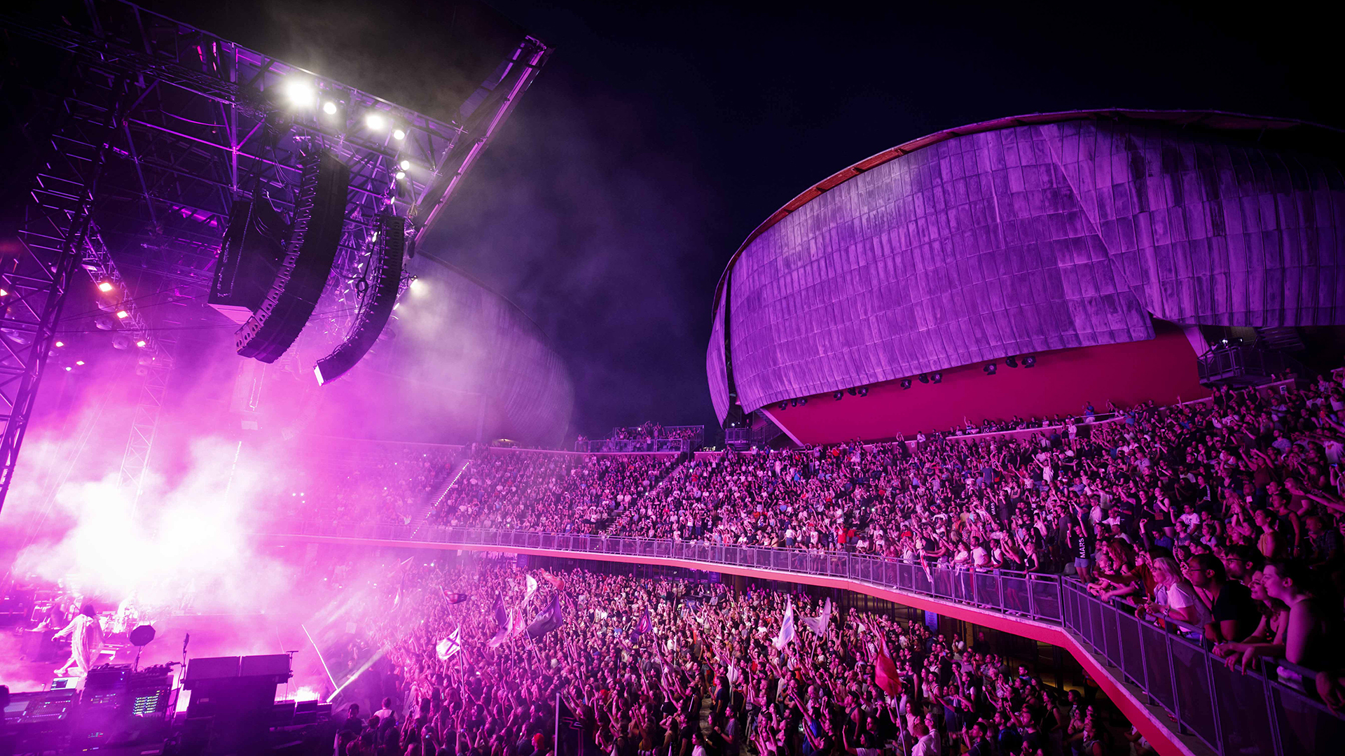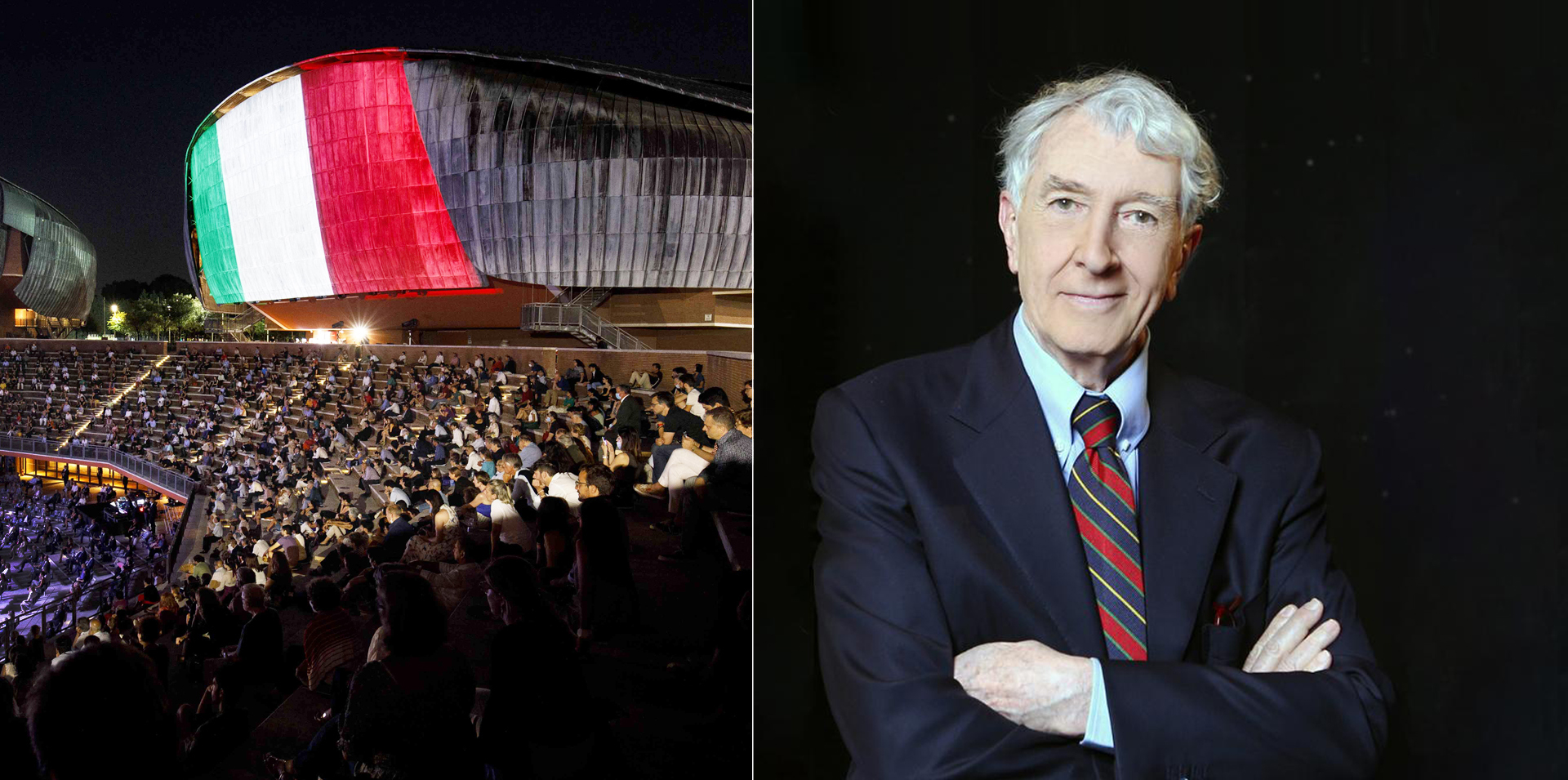 The open-air Cavea, named after the great Maestro Luciano Berio, is the heart of the Auditorium's architectural complex, with the dual function of a piazza, a meeting place and an amphitheater for outdoor performances. It is shaped as a semicircle and is divided into two parts: a lower paved part giving access to the foyers, and an upper tiered part for the audience. The theatre square, entirely paved in travertine marble, is the Auditorium's most versatile space, as it has a dual function: an exhibition area covering 560 square metres, suitable for presenting new products, or an arena for 3,737 seated people, or 5,128 standing. Its semi-elliptical configuration on two levels takes advantage of the natural height difference of 10 metres to provide an unsurpassed example of acoustics. The Cavea of the Auditorium can easily adapt its configuration to any requirement: Festa del Cinema di Roma (Rome Film Festival) it hosts the Red Carpet, while during the summer season it is the stage for the Roma Summer Fest, a two-month concert series featuring leading rock, jazz and pop musicians and exponents of the Italian and international art music scene take to the stage.