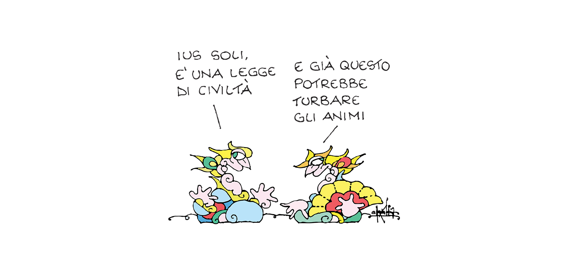 Un percorso negli ultimi anni attraverso le vignette di Ellekappa per La Repubblica, una selezione di disegni che ripercorrono il tempo lungo del decennio che abbiamo vissuto accanto al tempo corto che in questi otto mesi intorno a noi è precipitato. I nodi del nostro presente - la politica, l'immigrazione, il lavoro- sfilano nelle tavole in mostra insieme a fatti e personaggi che hanno segnato alcuni momenti cruciali del nostro senso di comunità. Giulio Regeni, Stefano e Ilaria Cucchi, Greta Thunberg, Barack Obama, hanno trovato, anche nel segno di Ellekappa, il loro posto nell'immaginario contemporaneo. La mostra, inizialmente ideata per l'edizione 2020 di Libri Come, poi tra i primi festival cancellati a causa dell'emergenza sanitaria, è stata ripensata e arricchita da alcune tavole pubblicate in questi otto mesi, e si chiude con un omaggio a Luis Sepúlveda, scomparso in aprile, che avrebbe dovuto aprire la Festa del Libro e della Lettura e che oggi, Insieme, vogliamo ricordare.