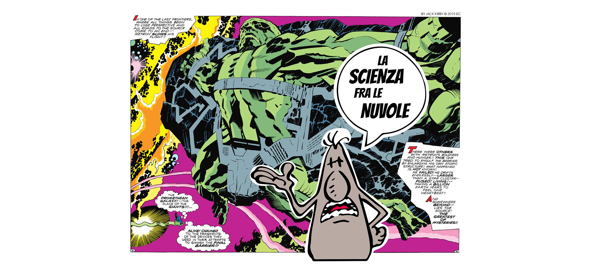 Il fumetto è da molto tempo una forma di espressione che non riguarda soltanto i bambini ma che, al contrario, coinvolge una fascia di pubblico sempre più ampia ed eterogenea. Una forma d'arte a tutti gli effetti, duttile e potente. Forse l’ultimo legame con una maniera antica di tramandare le storie. I fumetti ci mostrano un mondo incredibile, e sono una lente prismatica attraverso cui osservare la realtà che ci circonda con umorismo, delicatezza e (perché no) estremo rigore scientifico. Da questa convinzione nasce “La scienza fra le nuvole”. Una mostra che raccoglie tavole, strisce e storie firmate da grandi fumettisti italiani (Leo Ortolani, Silver, Zerocalcare e tanti altri) che, per gioco o per passione, hanno scelto di mettere la loro creatività al servizio dei più importanti enti di ricerca italiani. Cosa ci fanno Lupo Alberto, Nathan Never, Rat-Man, i supereroi Marvel, Topolino, in un laboratorio di ricerca? Come avrete capito, anche gli scienziati adorano i fumetti!