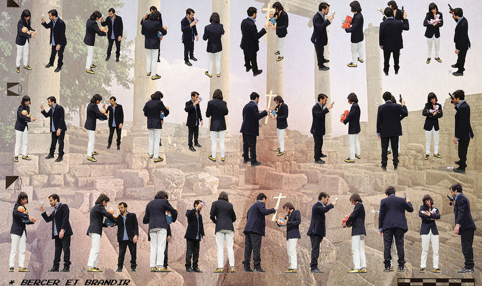 I due performer sul palco inventano marce e canzoni, recitano, suonano e reagiscono allo svolgersi degli eventi tra contraddizioni e adrenalina, intimità e tensione: eccoli in esuberanti striptease al contrario o intenti a utilizzare un semplice paio di jeans per raggiungere mete altissime e lanciarsi su ripidissimi scivoli; eccoli esibirsi nonostante tutto e tutti e con tutte le loro forze, anche fino a smettere di funzionare. Perché GRANDE — (rigorosamente con il trattino) è un titolo da completare attraverso lo sguardo e il divertimento dello spettatore.
