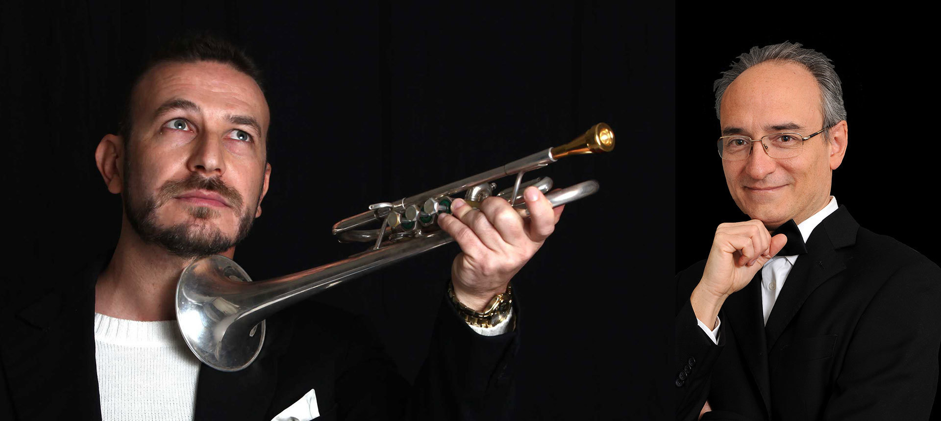 Luca Seccafieno e Fabrizio Viti suonano insieme da molti anni, e la loro attività concertistica è presente sul palcoscenico nazionale ed internazionale. Di estrazione classica - l'uno già prima tromba dell'Orchestra da camera di Venezia, l'altro docente di pianoforte in conservatorio - sono accomunati dalla curiosità in campo musicale ed hanno maturato varie esperienze del mondo jazz, del pop rock e della musica per film. Questa loro poliedricità musicalie li porterà, in questo concerto, a rielaborare la musica dell'Est di Arutunian, quella di Theo Charlier, le coinvolgenti atmosfere di West Side Story e la rapsodia per eccellenza: la Rapsodia in Blue di George Gershwin.